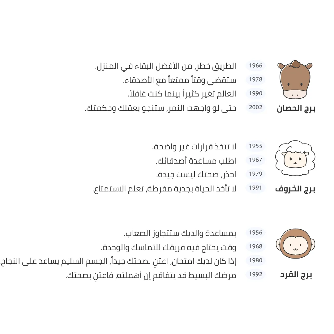 لمعرفة المزيد عن الأبراج الصينية وخصائص كل برج، اقرأ دليل الأبراج الصينية الاثني عشر الشامل.