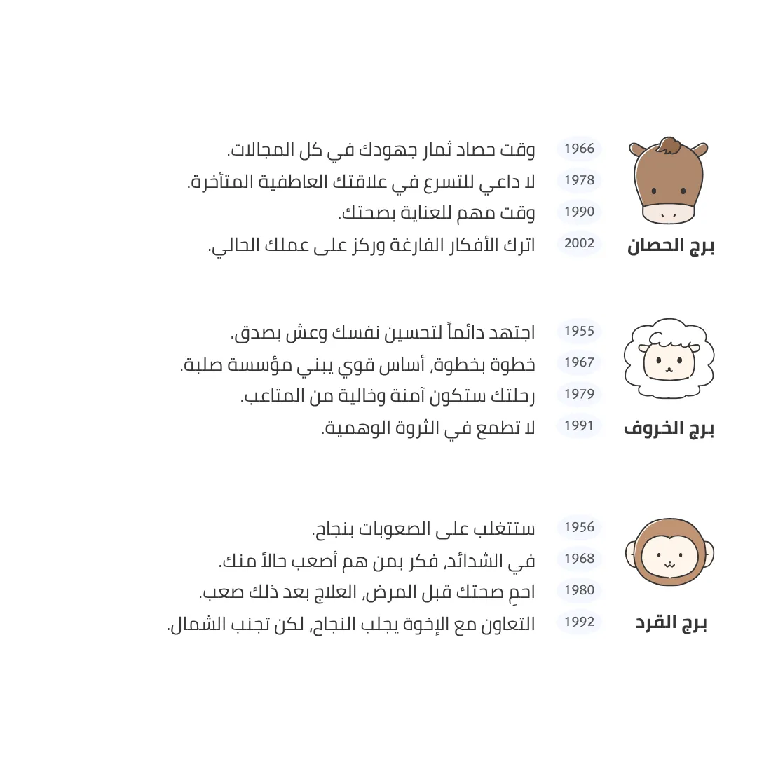 لمعرفة المزيد عن الأبراج الصينية وخصائص كل برج، اقرأ دليل الأبراج الصينية الاثني عشر الشامل.